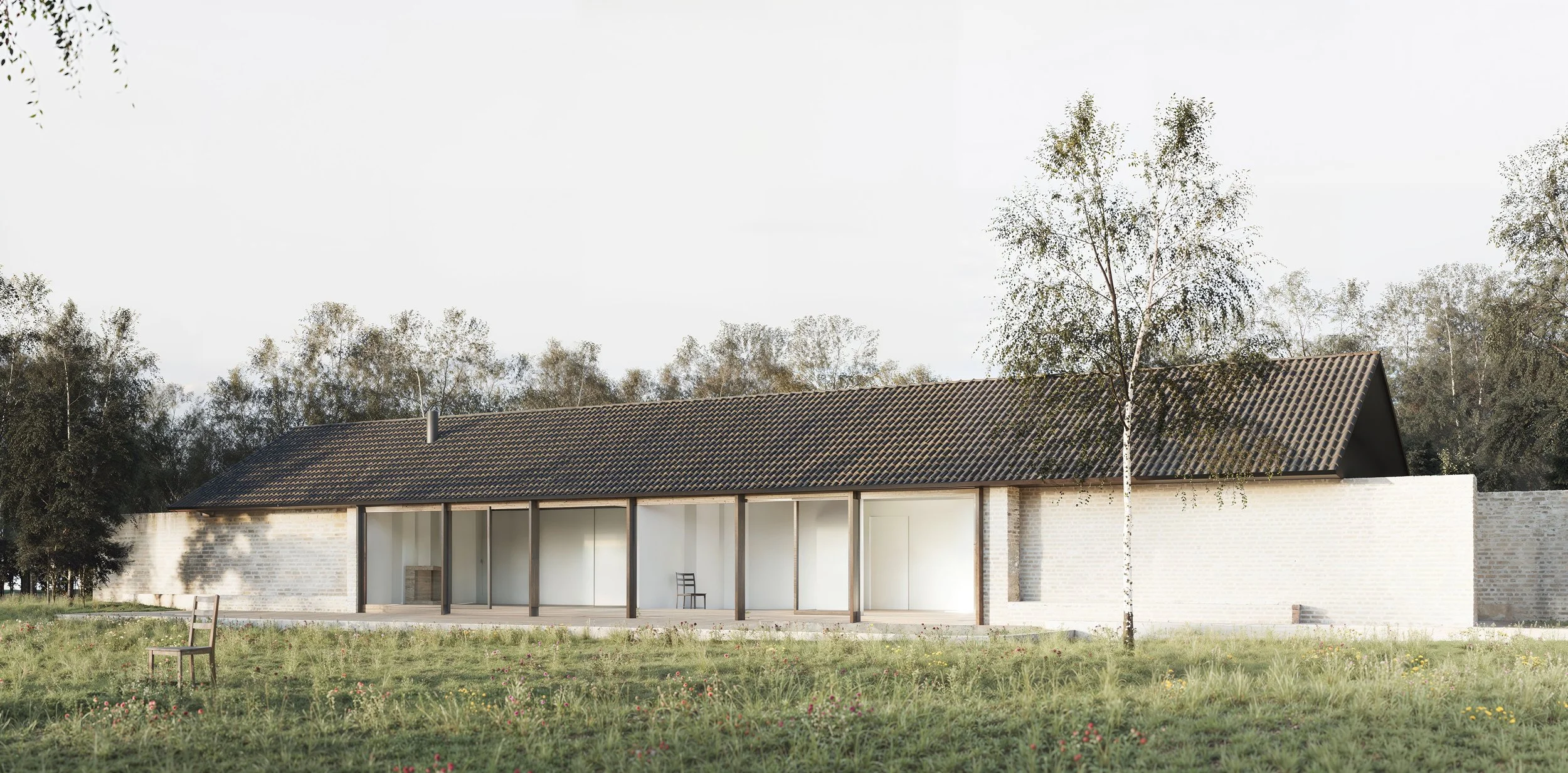 From a structural perspective, a hybrid system combining load-bearing walls with a post-and-beam framework in the roof structure has been employed. This solution enables precisely controlled spatial effects, including large glazed openings and a flexible articulation of views towards the garden. The overall form of the building, together with the roof geometry and materials derived from the villa-scale context, allows the house to blend harmoniously into its surroundings while maintaining a clear formal and conceptual autonomy.